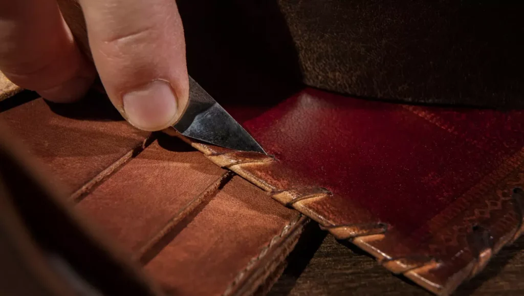 Vérification minutieuse de chaque réparation avant restitution. Nettoyage, nourrissage du cuir et finitions soignées.